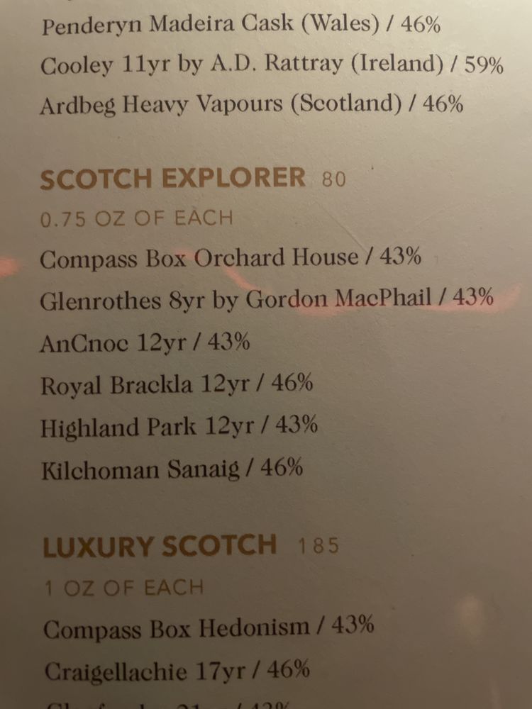 “ Great evening to enjoy live music (no cover) and cocktails. They are known for their extensive selection of whiskey. Front desk hostess and waiters all had great service. Two hiccups though: 1. The singer that evening kept taking breaks and seemed a bit non energetic. 2. A rowdyish party of 5 or 6 was a bit rude to the hostess and was seated initially in the back with a partial view of the stage. I noticed the waitresses said the table in the front was reserved for a party of 5 that were coming soon and so they denied others from sitting there (including the rude group and our group of 5's request). Then, I see one of the men from the rude party sneak cash to a male worker in a button down (perhaps the manager) and then the entire party got moved to the front. I guess if you go out a lot, this happens in the NYC scene but I just noted this. If you love fruity drinks, get the One Night in Tulum (mango and coconut and rum). But do try their whiskeys or cocktails like Smoked Manhattan which they do beautifully. Overall, it mightve been an off night for the performer. But overall a good evening hence the 4 stars. ”